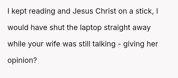 The debate centers on where the boundary of acceptable sp*ech lies when dealing with sensitive individuals versus the standard of respect owed to a spouse.