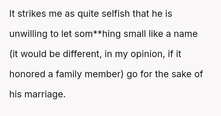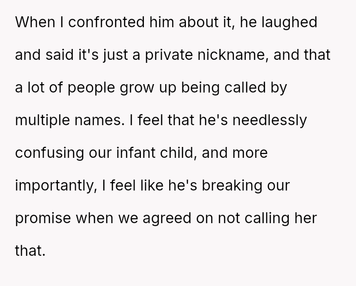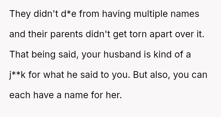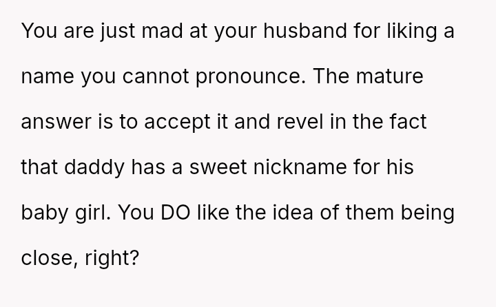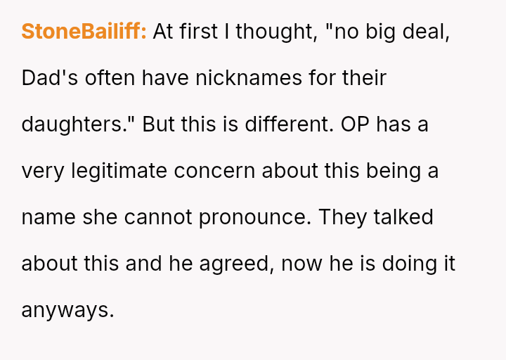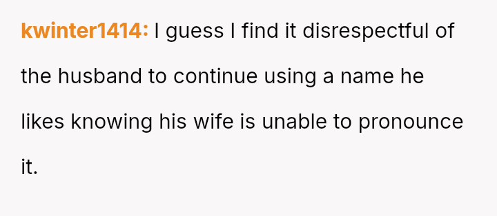 The central debate hinges on whether a private nickname that v***ates a mutual naming agreement warrants serious concern, or if the husband is ent*tled to use a name he loves, even if it is only in private settings.