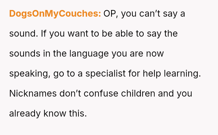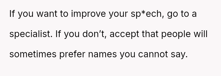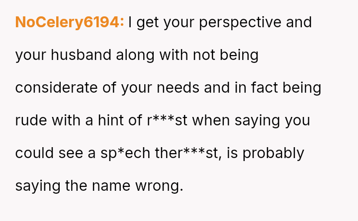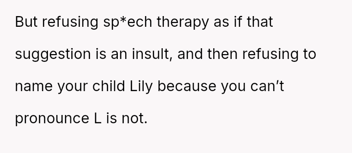 After multiple discussions, the husband suggested sp*ech therapy, which the OP resisted. They eventually agreed on the name Hana.
