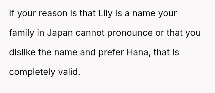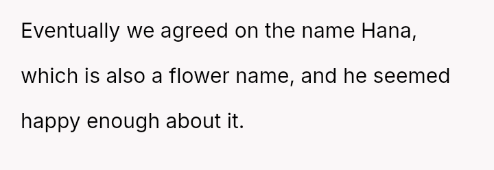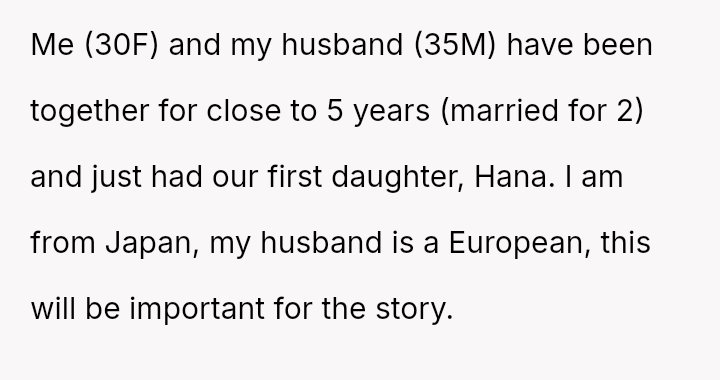 The original poster (OP), a 30-year-old woman from Japan, and her 35-year-old European husband recently welcomed their first child, a daughter named Hana. Before the birth, the couple discussed names extensively.