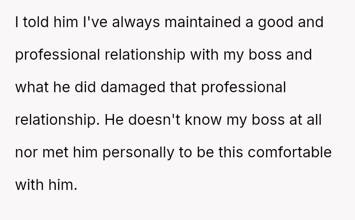 Was the husband justified in believing that the gift exchange was a private matter between him and the boss, or did his actions const*tute an inappropriate and damaging intrusion into the OP's professional sphere?