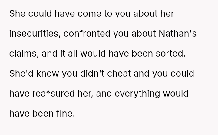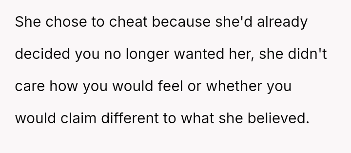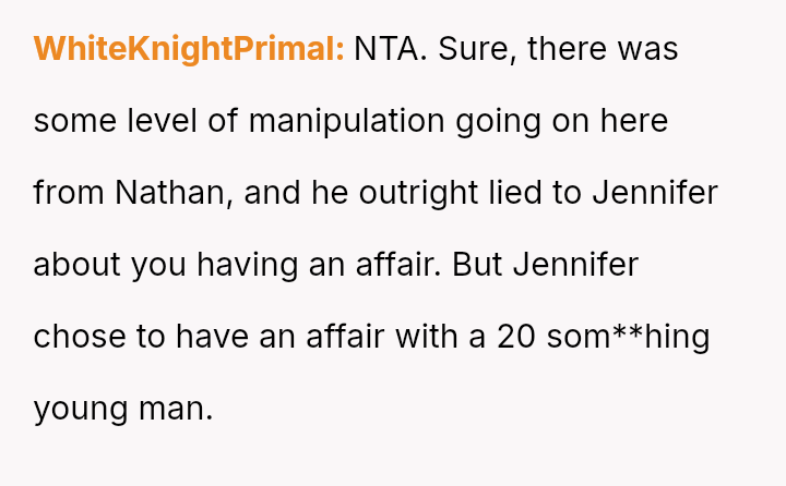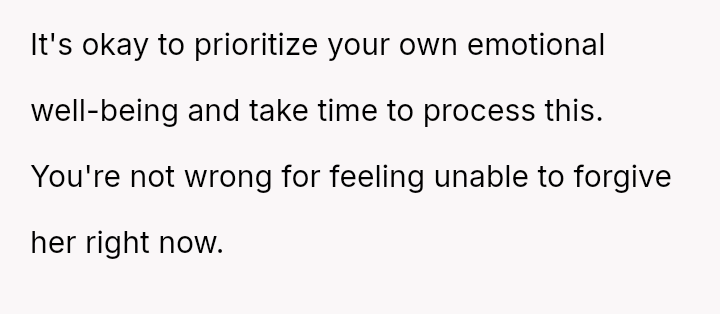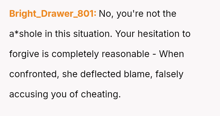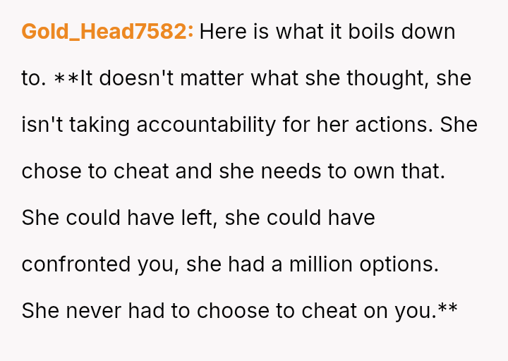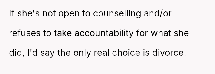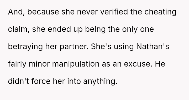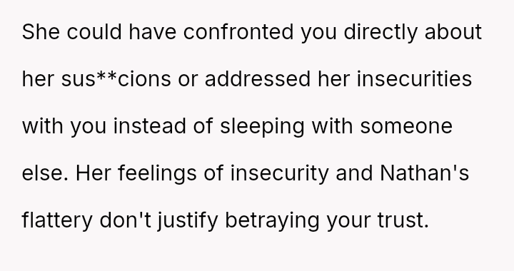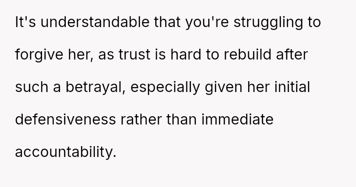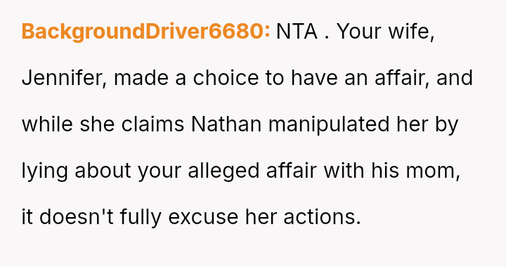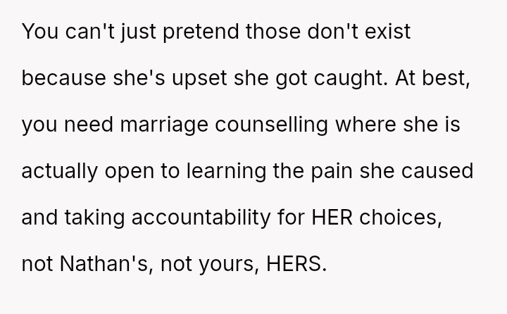 Given the complex layers of mutual deceit, manipulation, and in***elity within two interconnected relationships, should the OP prioritize his need for emotional safety and truth, or is there a path toward forgiveness based on the wife's insistence that she was manipulated by a third party?