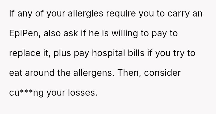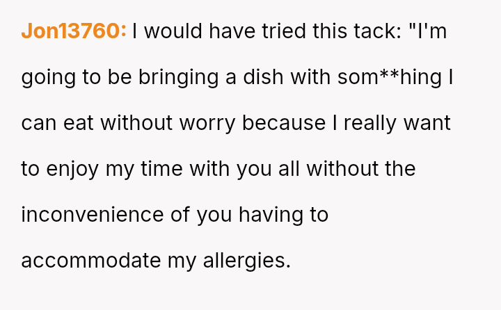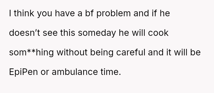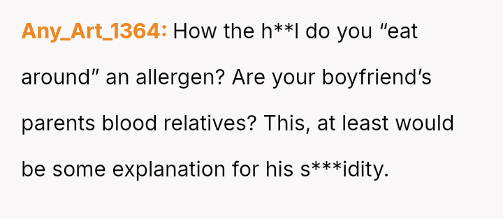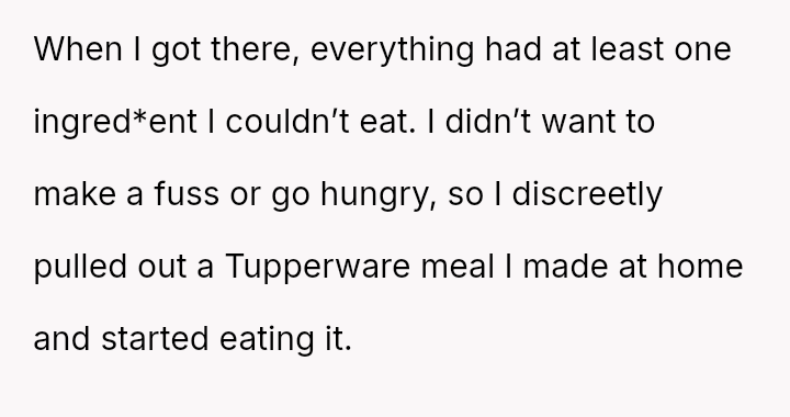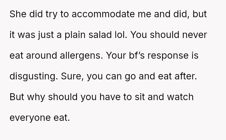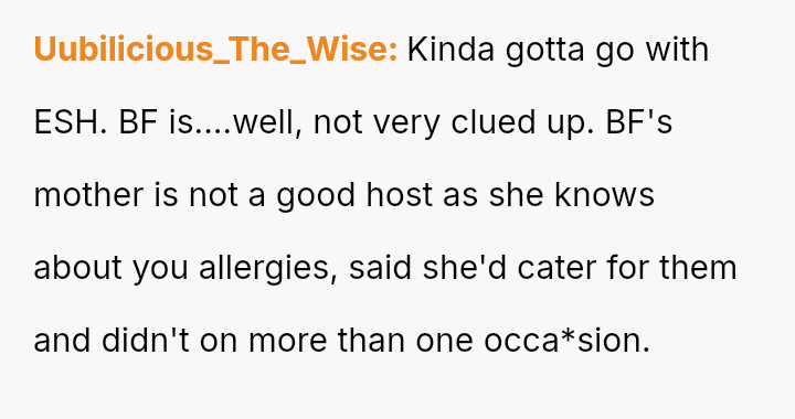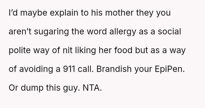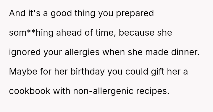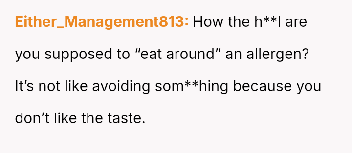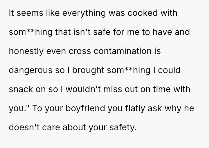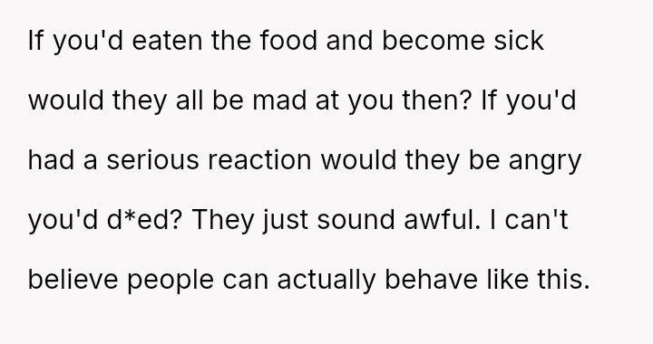 Given the es**blished history of allergic incidents and the clear communication beforehand, was the OP justified in ensuring their own food safety, or did their action unnecessarily damage the relationship dynamic by not attempting to 'eat around' the food as suggested?