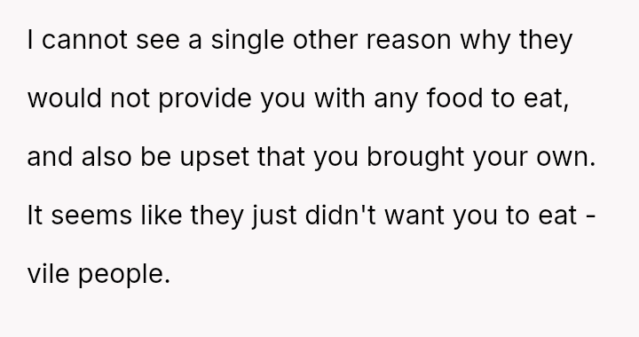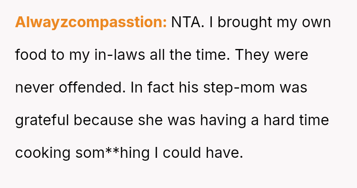 The OP prioritized their severe health safety by bringing their own meal, which was interpreted by the family as a lack of trust or an intentional slight.