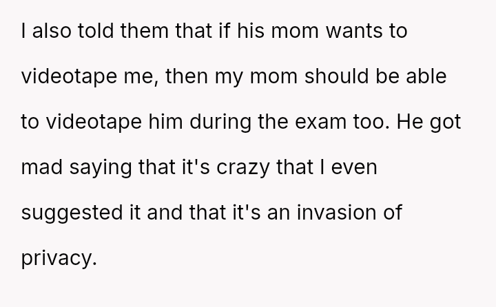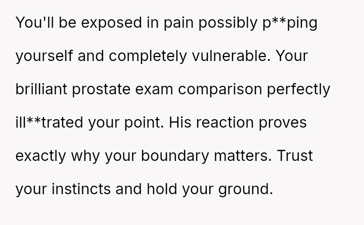 The OP utilized a provocative counter-example involving an invasive medical exam to ill**trate her point about privacy, which caused immediate conflict.
