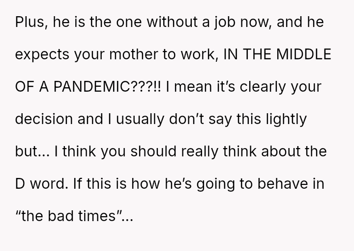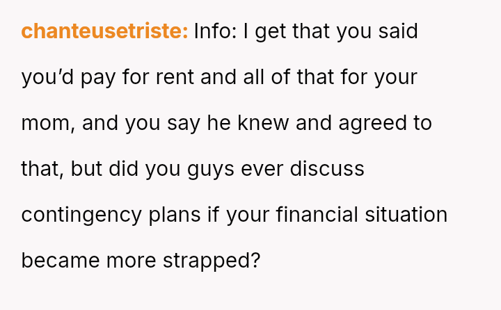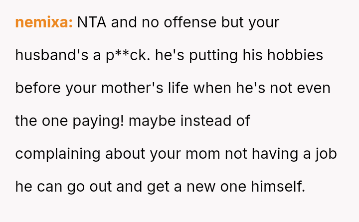 Is the OP justified in firmly stating that financial support for her mother is non-negotiable, even when it restricts the couple's lifestyle during the husband's unemployment, or should she have negotiated a temporary reduction in support given the unforeseen financial hardship the couple is now facing?