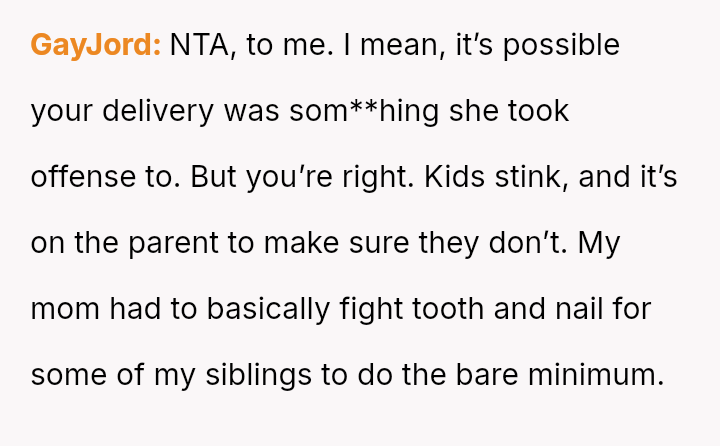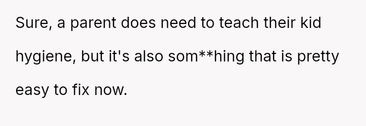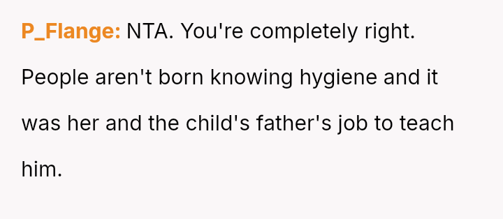 Was the OP justified in prioritizing the child's immediate hygiene correction, even if it meant criticizing the mother's parenting approach, or did his delivery v***ate the necessary respect for her role as the primary caregiver?