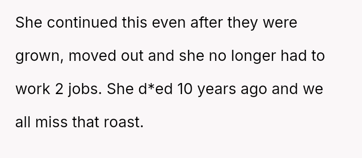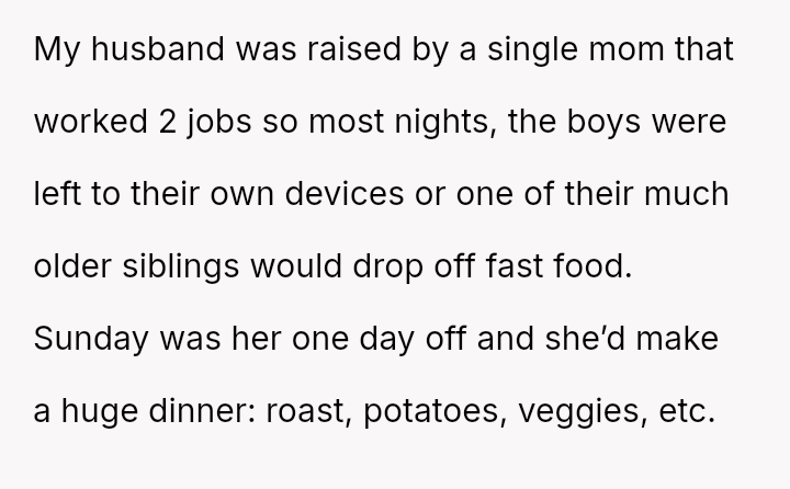 Even years after her pa*sing, that roast remains a poignant memory, a connection to the warmth and care that once filled their home.