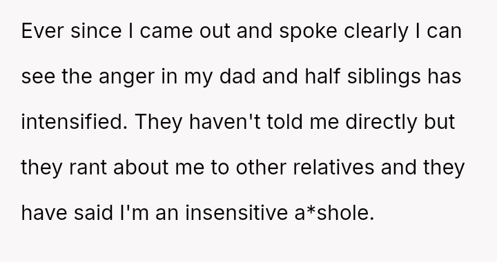 This refusal caused tension, leading the OP and his wife to distance themselves from his father and half-siblings, whose anger over the decision has remained intense.