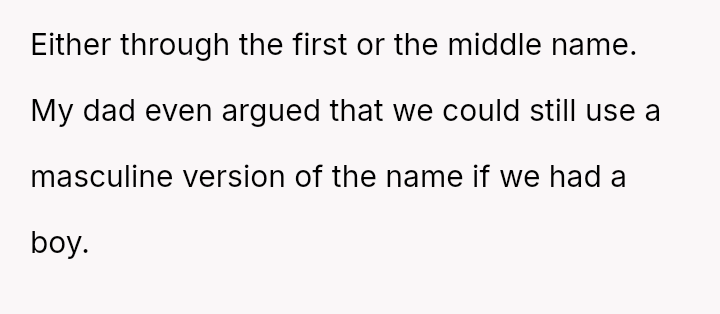 The father even suggested using a masculine version of the name if the baby was a boy, seeing the pregnancy as a gift from his late wife.
