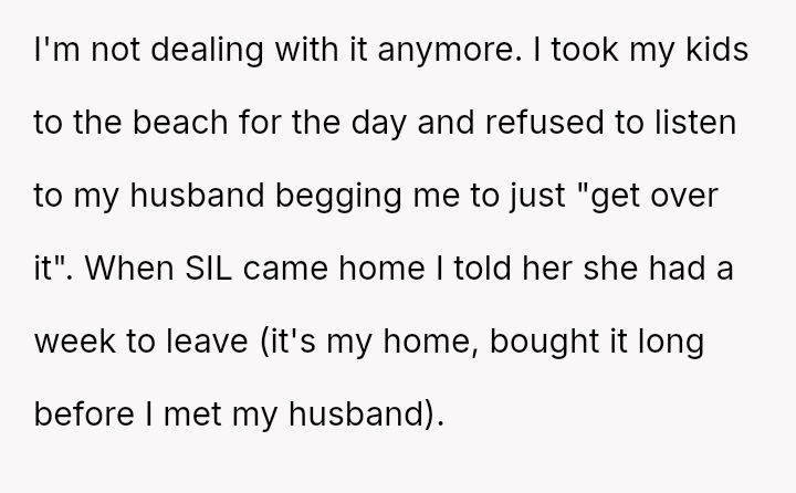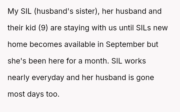The central conflict involves the OP a*serting necessary personal boundaries against the SIL's ent*tled expectations of free services, which escalated into the OP setting a firm eviction d**dline for the unwelcome arrangement.