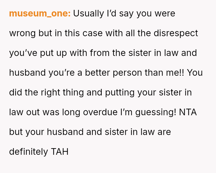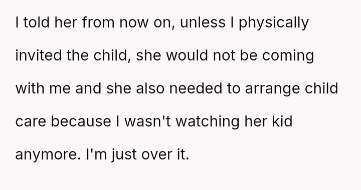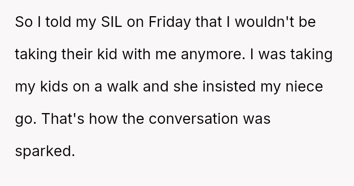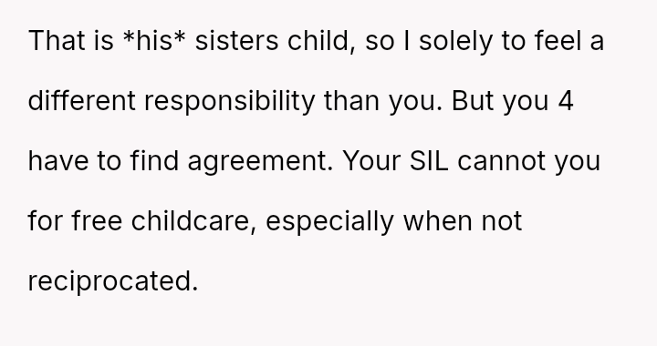 The original poster (OP) reached a breaking point due to the constant, one-sided demands for free childcare from their sister-in-law (SIL) and the resulting lack of respect within their own home.