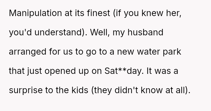 Alternatively, should the OP have prioritized maintaining familial peace over a*serting control over their own space and time?