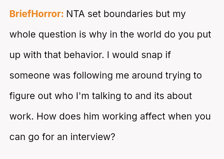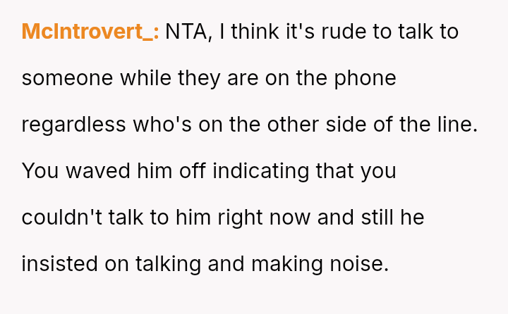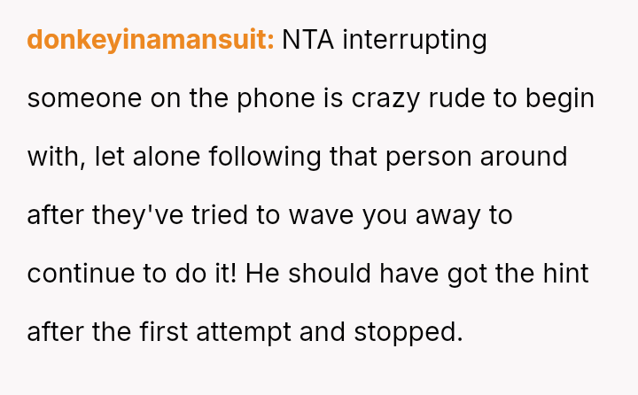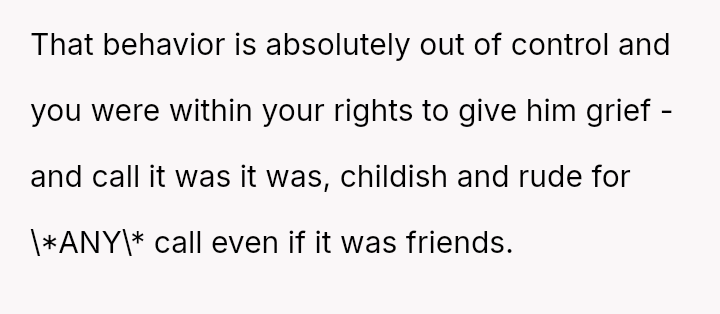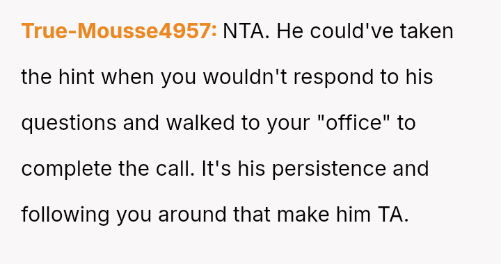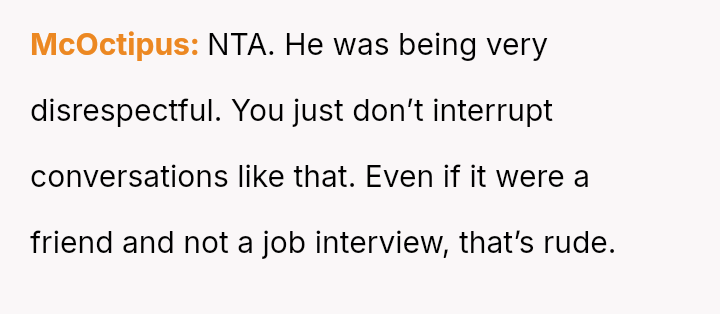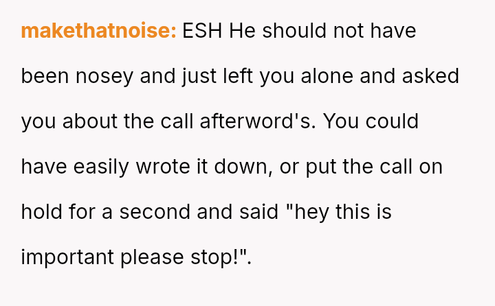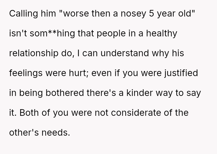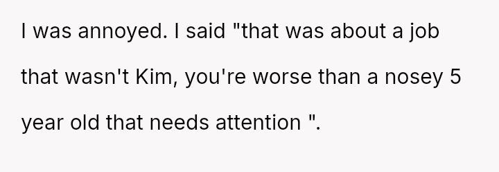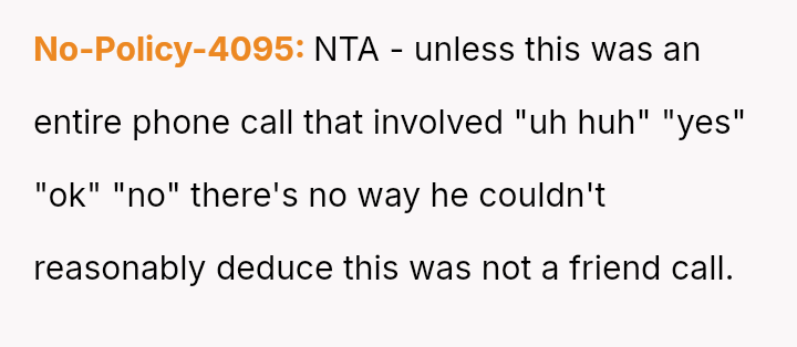 Ian, conversely, felt slighted by the OP's sharp reaction and believed his simple curiosity about who she was speaking with was being unfairly dismissed.