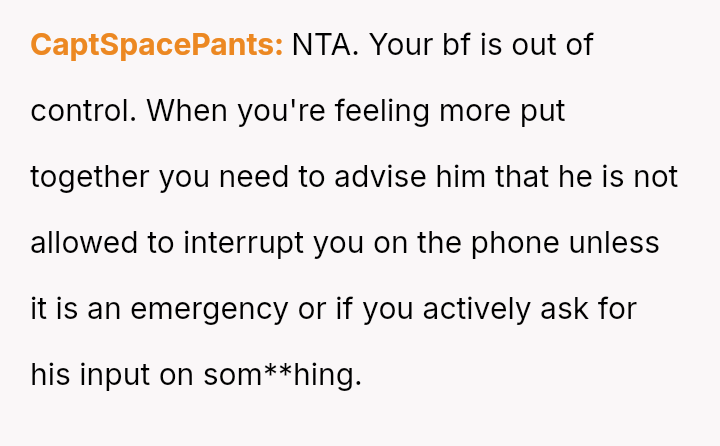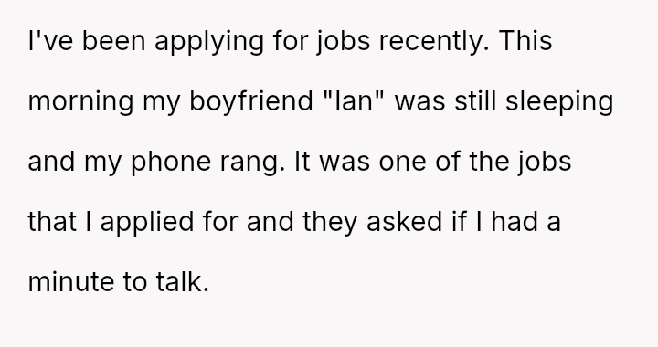 The original poster (OP) felt highly frustrated and disrespected because her boyfriend, Ian, repeatedly interrupted a crucial, unplanned job phone screening, prioritizing his curiosity over her professional needs.