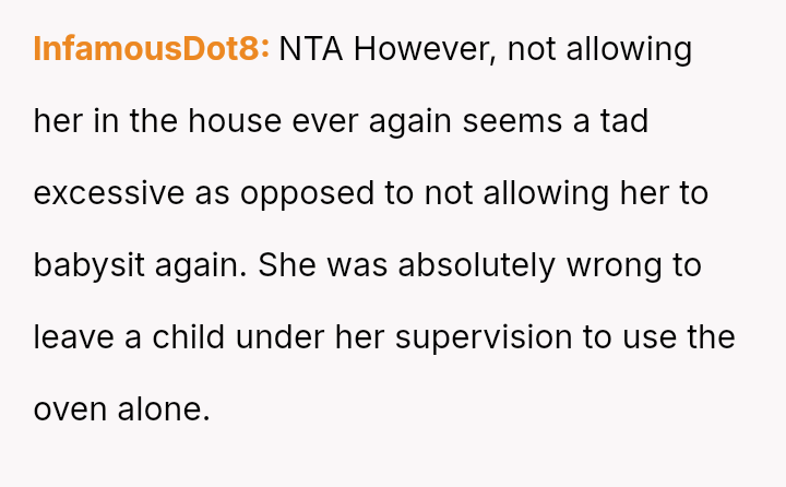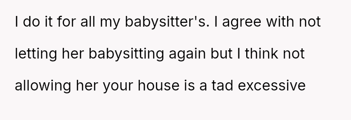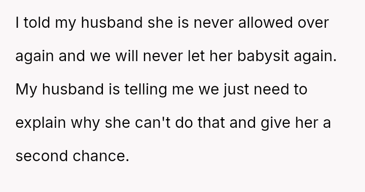 The OP is understandably reacting with intense anger and has decided to permanently ban the babysitter, creating a conflict with the husband who suggests counseling and a second chance.
