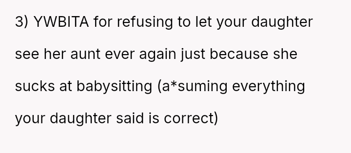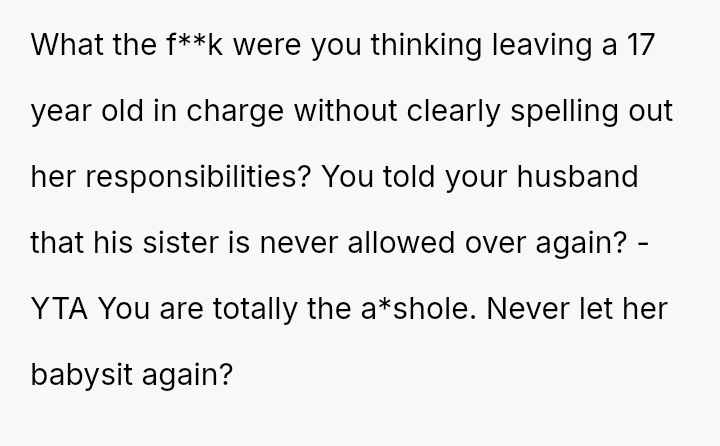 Is the OP's reaction to permanently exclude the sister-in-law from babysitting justified given the potential danger involved, or is the husband correct that communication and education about boundaries should precede such a severe, relationship-altering consequence?