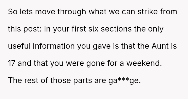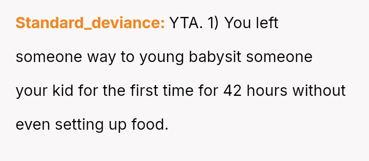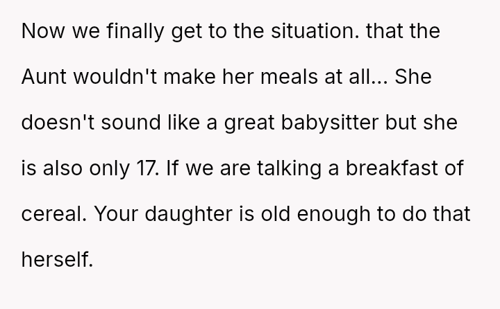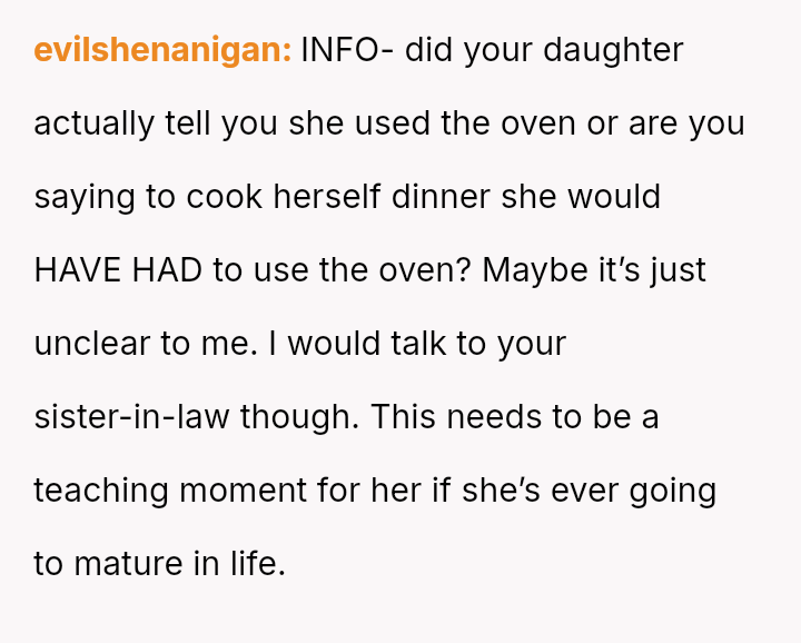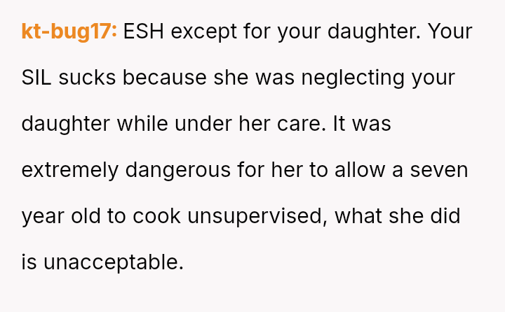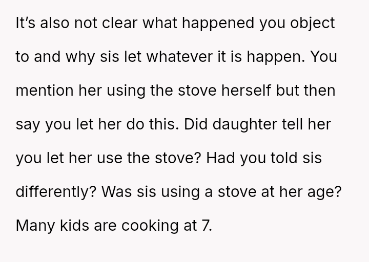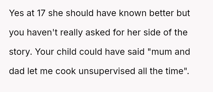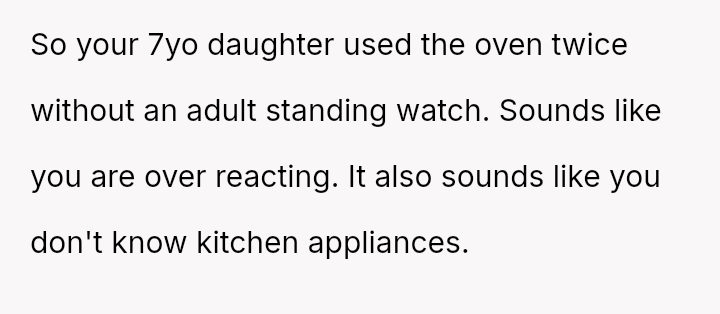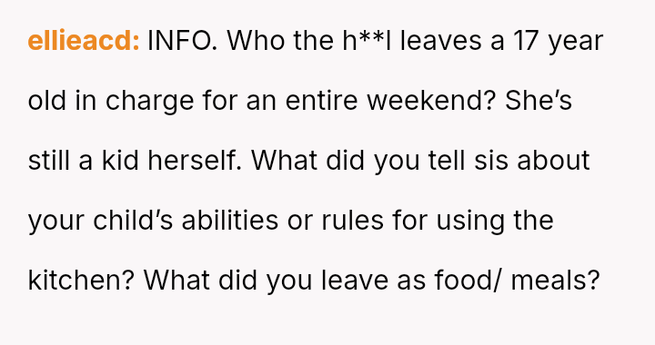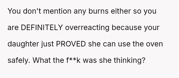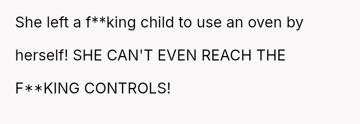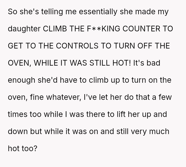 The original poster (OP) experienced a severe breach of trust and safety expectations after discovering their 17-year-old niece allegedly forced their 7-year-old daughter to cook unsupervised, including interacting with a hot oven.