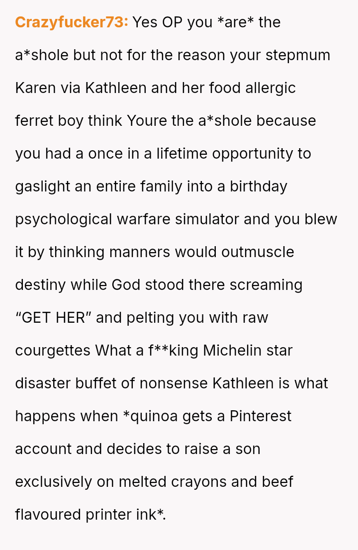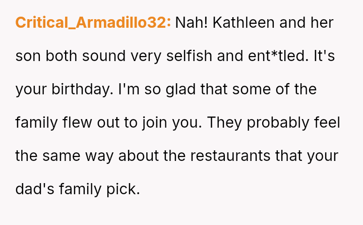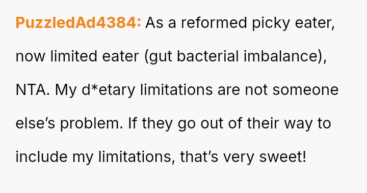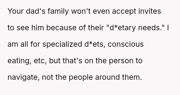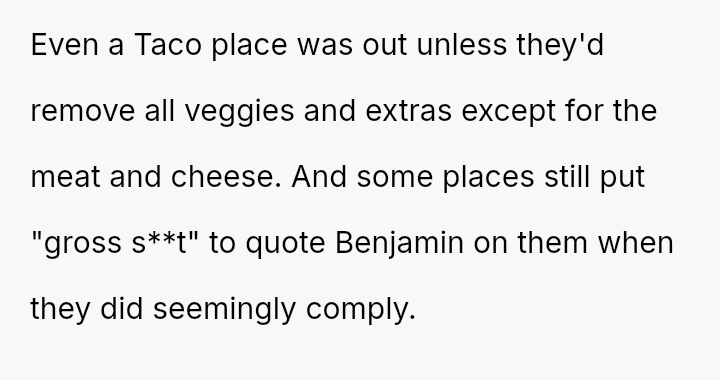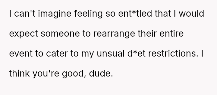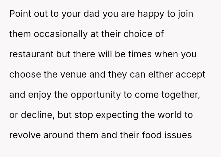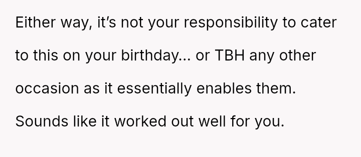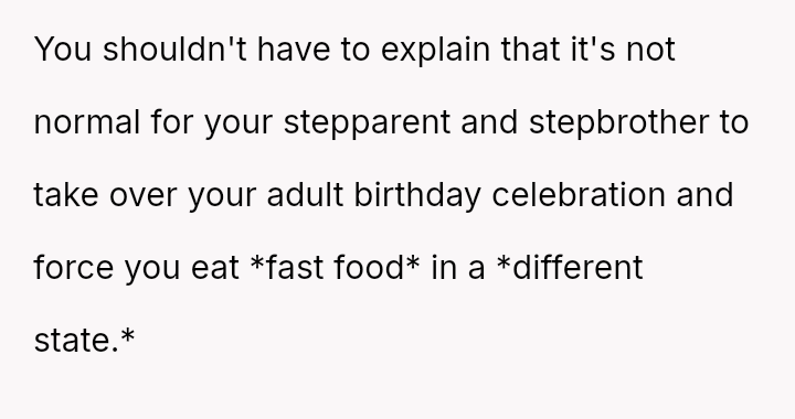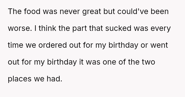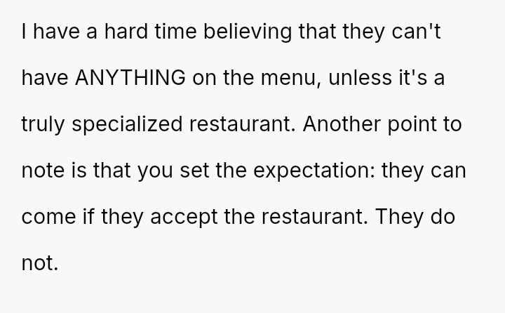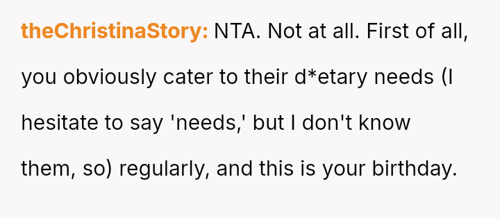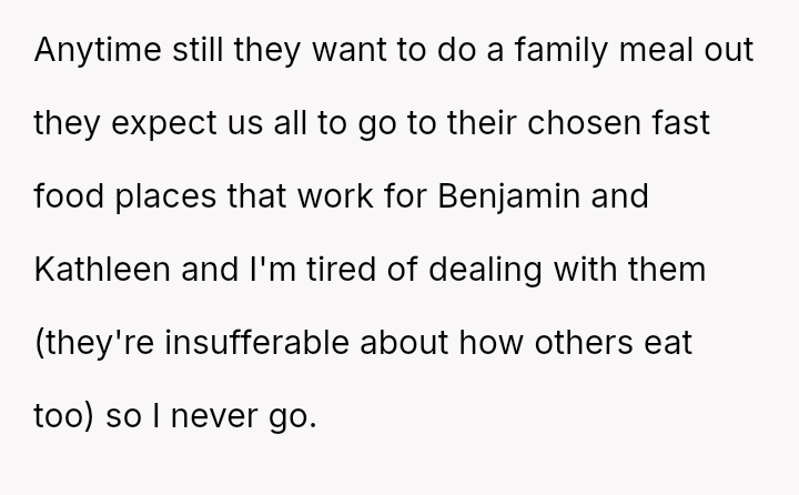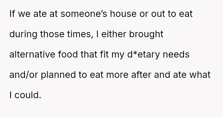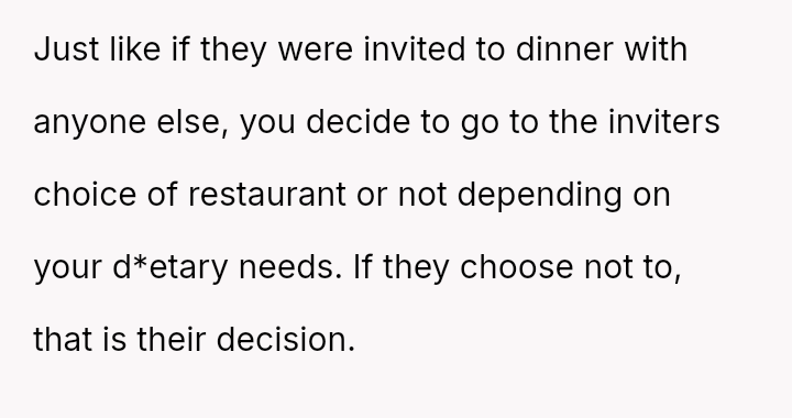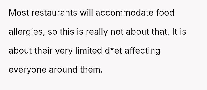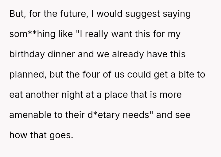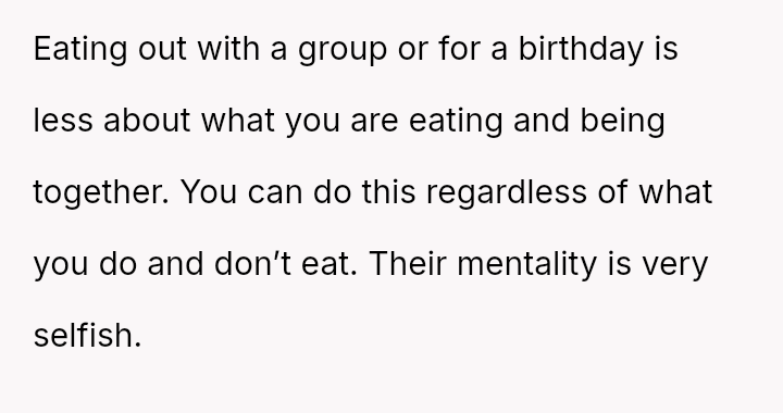 These d*etary restrictions severely limit where the family can eat out, often forcing them to choose from a very small selection of fast-food places, even for the OP's celebrations.