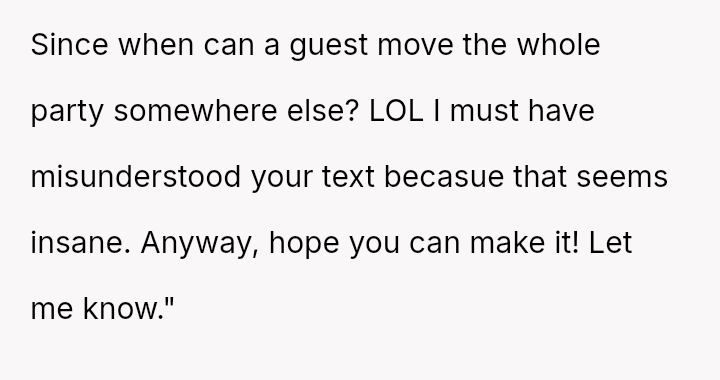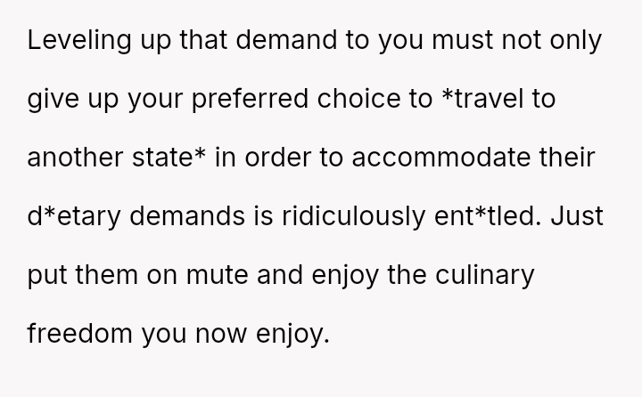 The OP agreed only if they could eat at the chosen location, which they refused, demanding the entire party travel out of state to accommodate their preferences, leading the OP to stand his ground and question if he is in the wrong.
