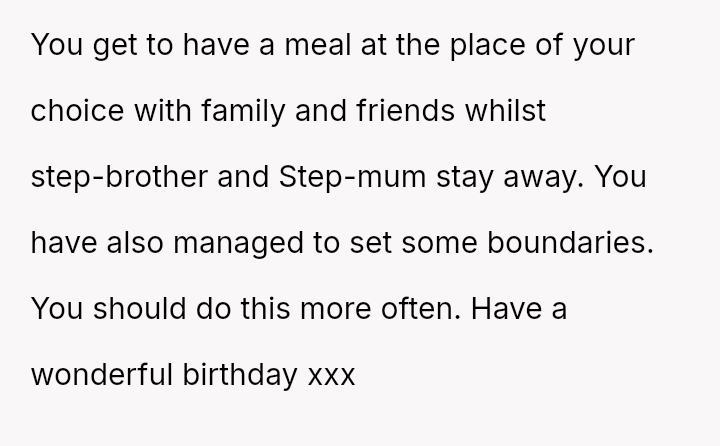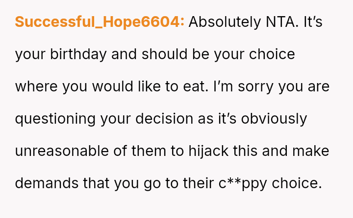 The core question for debate is whether the OP was justified in refusing to change his birthday dinner plans to accommodate his stepfamily, given their inflexible demands, or if the expectation to include them superseded his right to choose the venue for his own celebration.