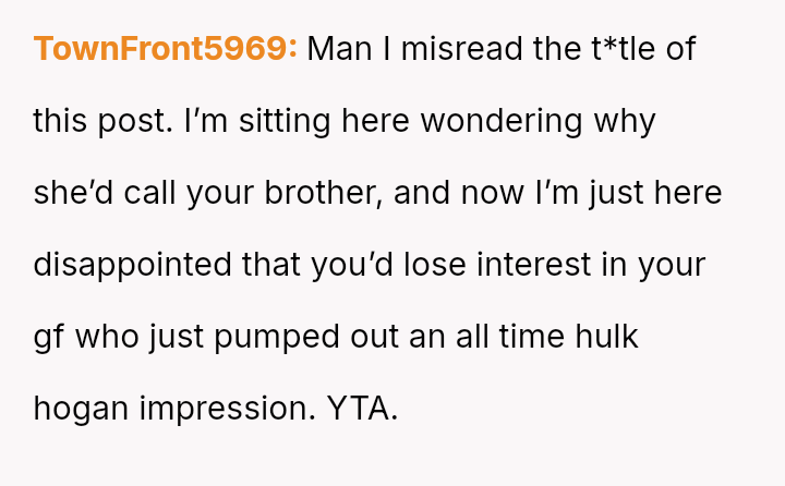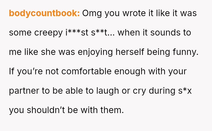 The central question is whether the girlfriend's reaction was an innocent, albeit poorly timed, expression of excitement, or if it indicated a fundamental misalignment in how she perceives or expresses intimacy during s*x compared to the narrator.