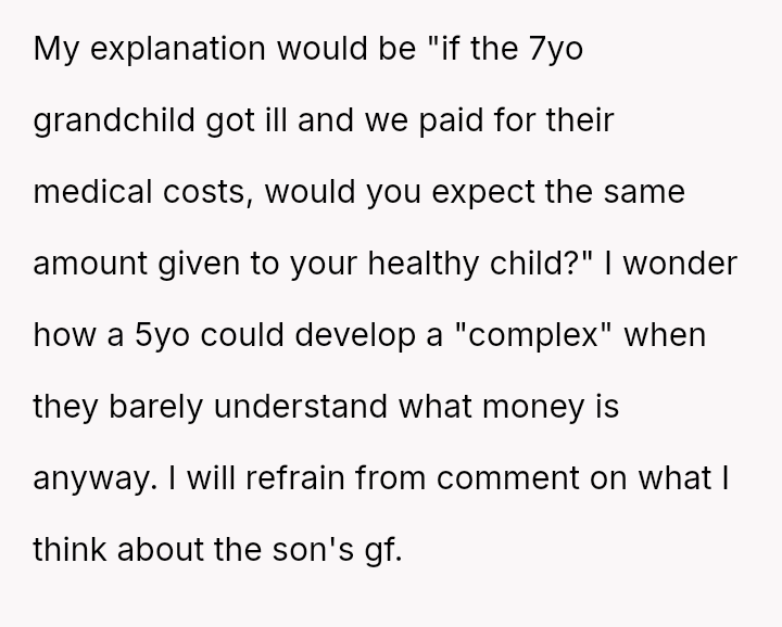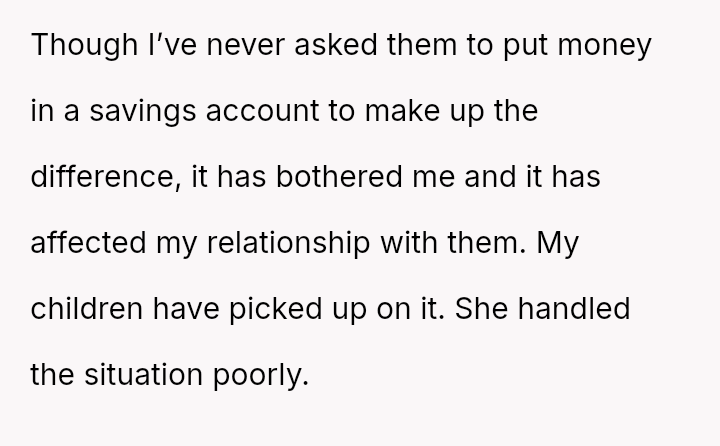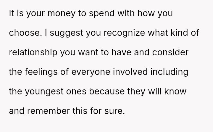 Despite whispers of favoritism, her generosity flows freely, driven by a deep desire to uplift each child in their own way, honoring their individual choices without judgment.