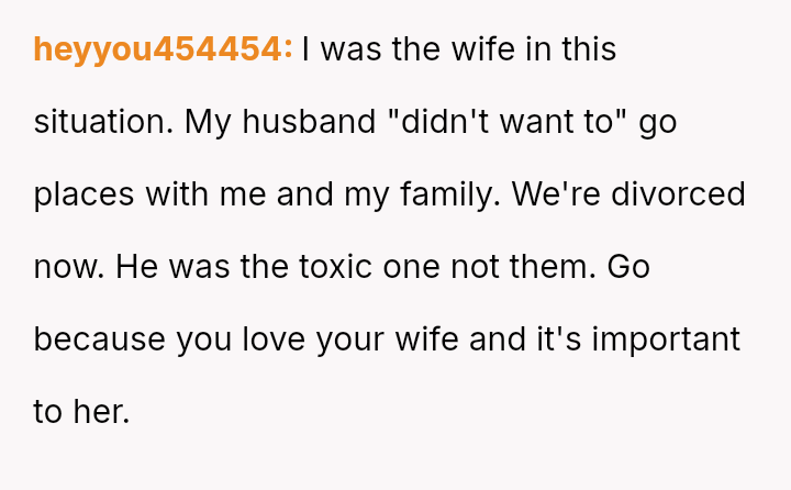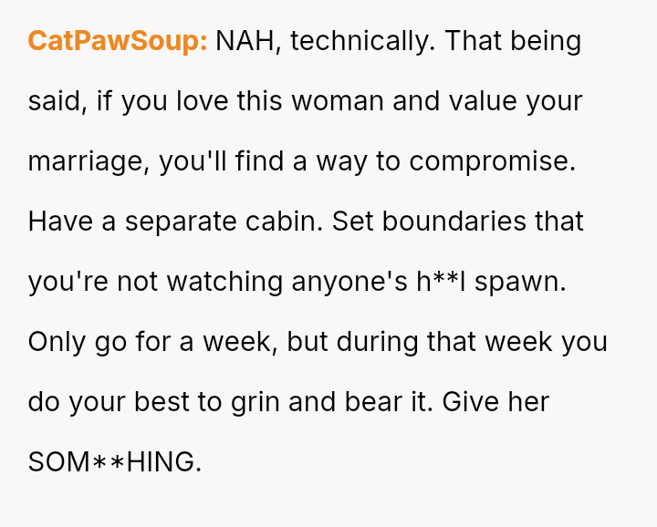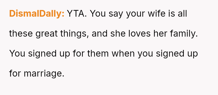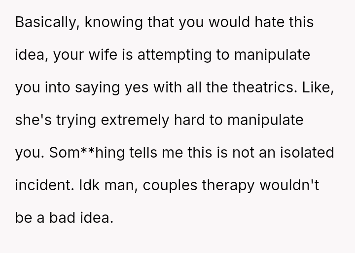 Or does his outright refusal demonstrate a failure to compromise for the sake of his wife's happiness and family relationships?