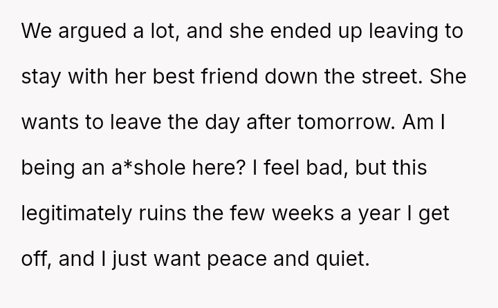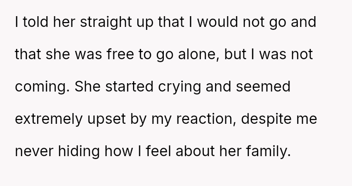His firm refusal created a significant conflict, causing his wife distress and resulting in her temporarily leaving their home.