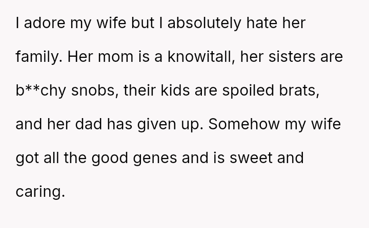 His wife, a shining beacon of kindness and warmth amidst the chaos, was the only light in a family he wished he could walk away from.