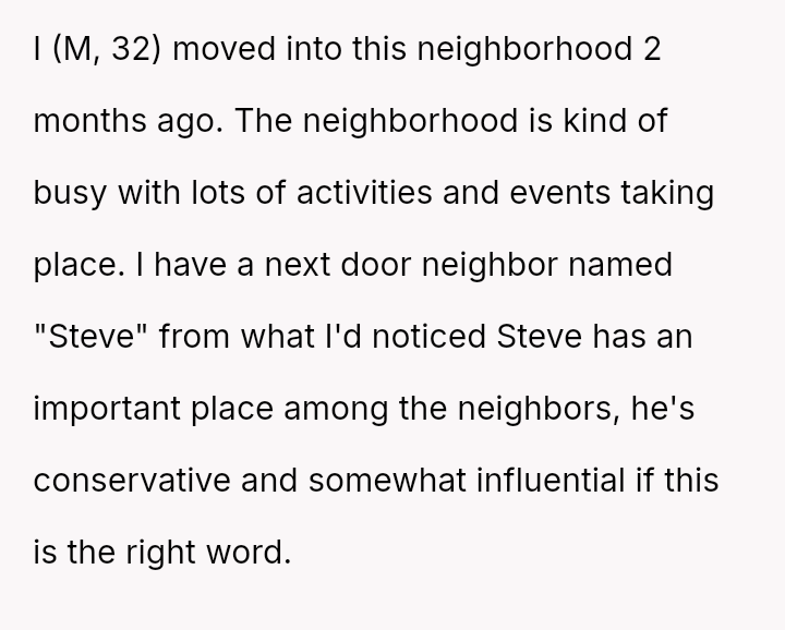 The original poster (OP) is facing significant conflict due to their desire for privacy and distance from a persistent and influential neighbor, Steve.