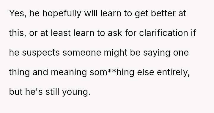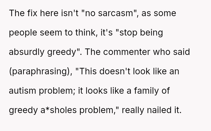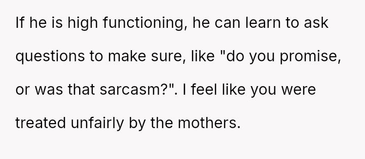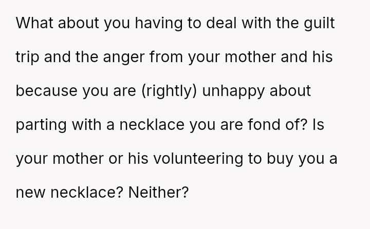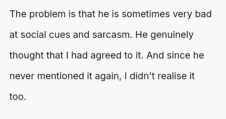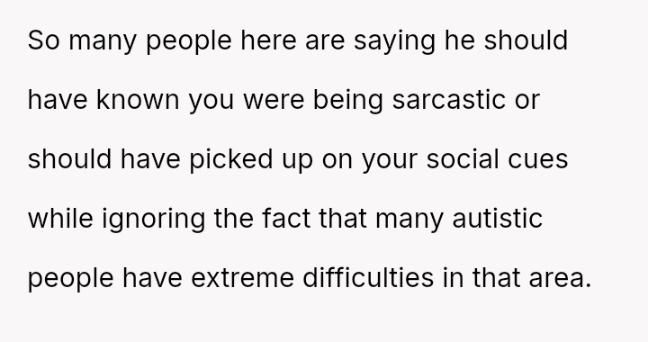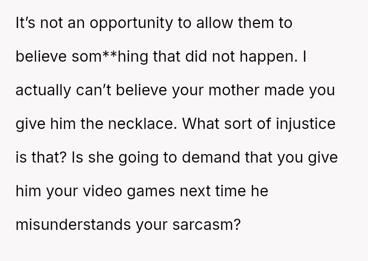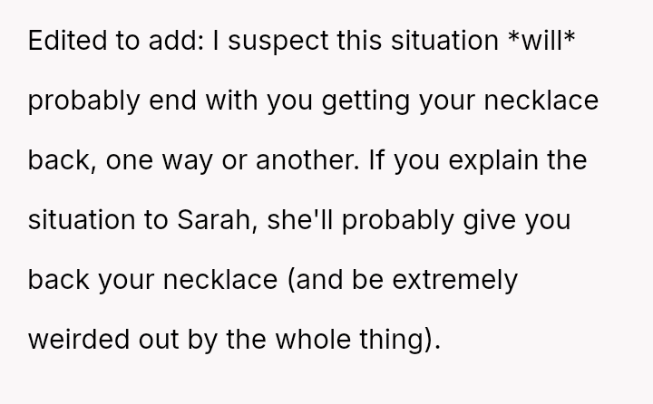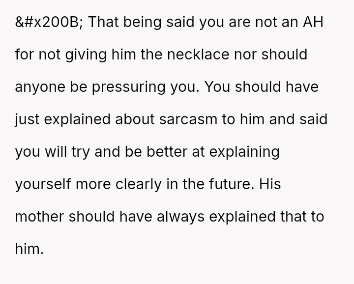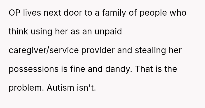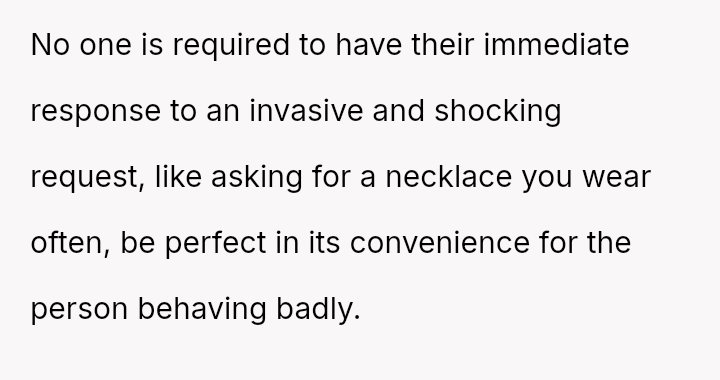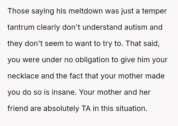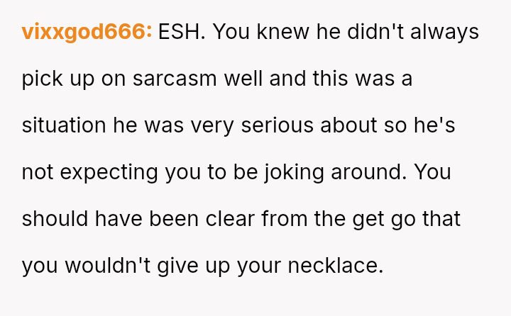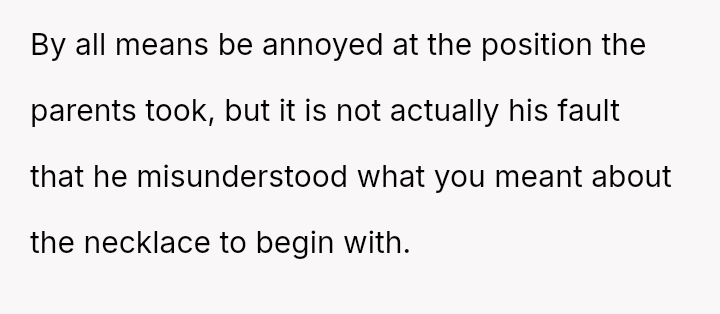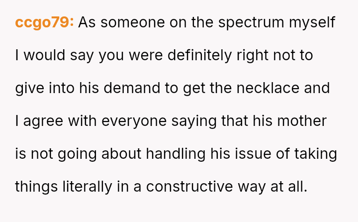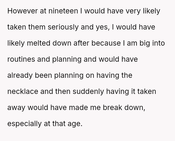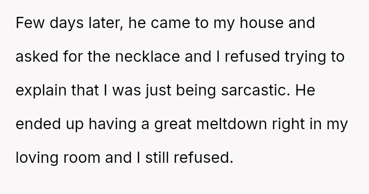 She initially dismissed her autistic neighbor's request for her necklace as a joke, but he interpreted it as a genuine agreement.