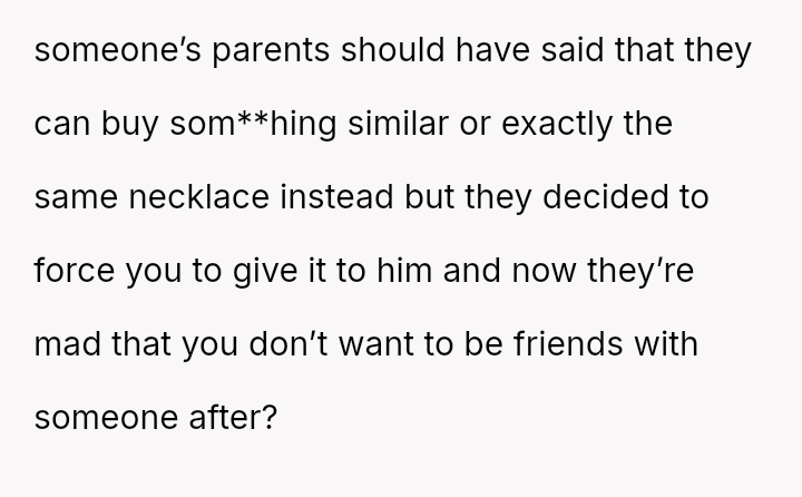 Was the user wrong to refuse to give away a personal item, even if the agreement was based on a severe miscommunication rooted in her friend's autism, or were the parents justified in forcing compliance to protect the neighbor's emotional s**bility?