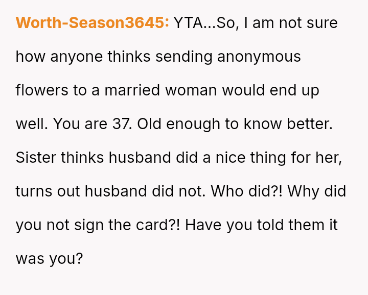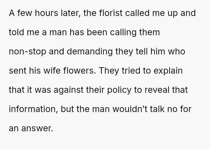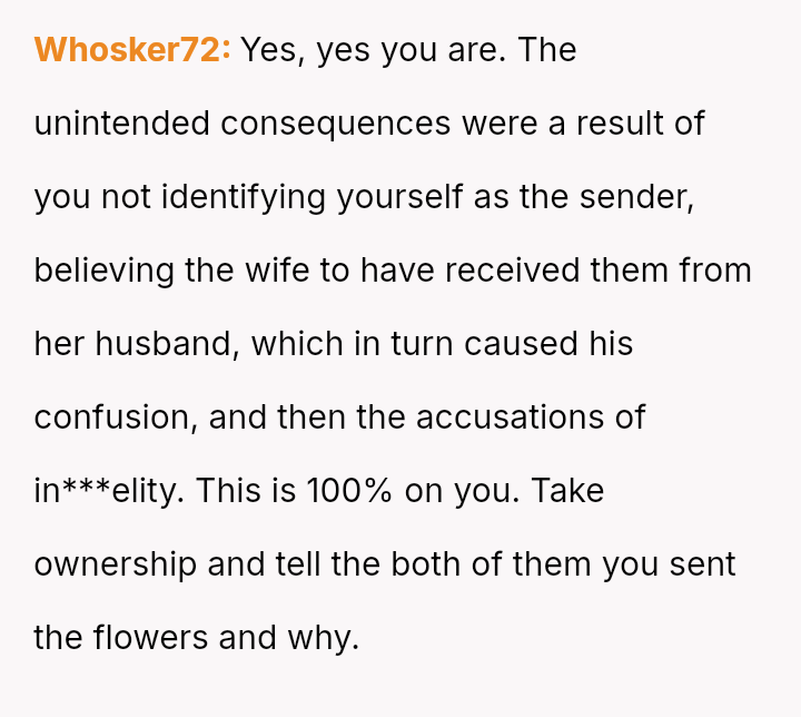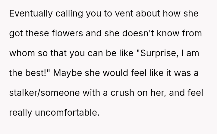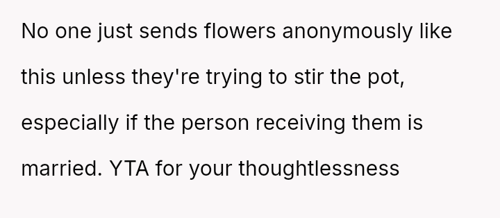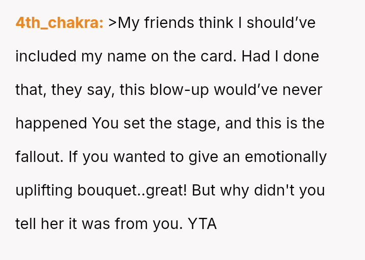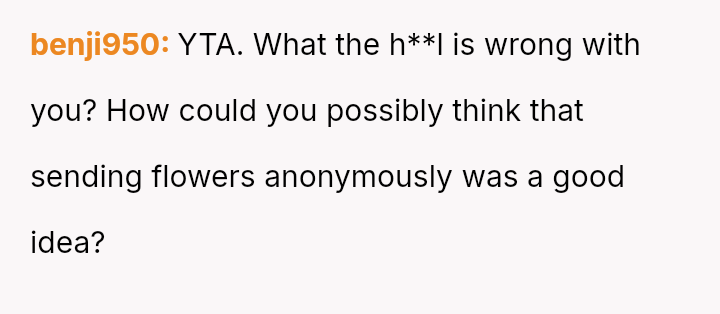 Given the severe fallout, was the decision to send anonymous flowers an appropriate gesture of support, or did the lack of clear identification create an unnecessary risk of misunderstanding and relationship damage?
