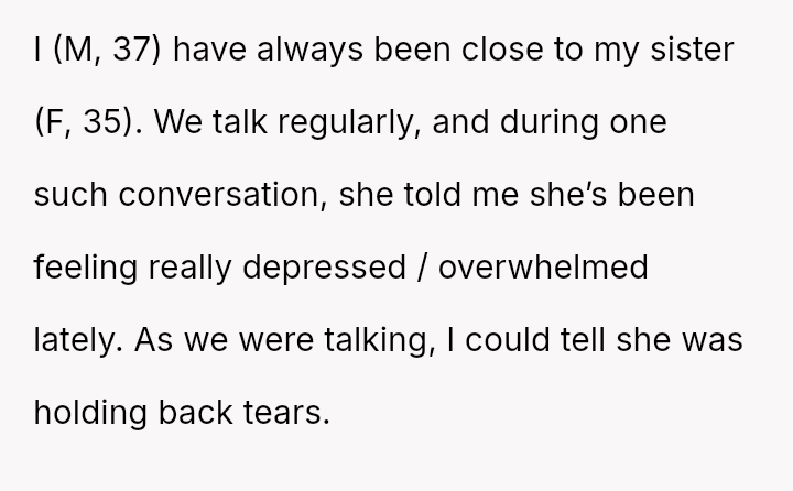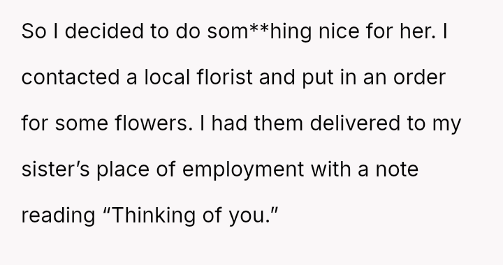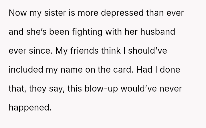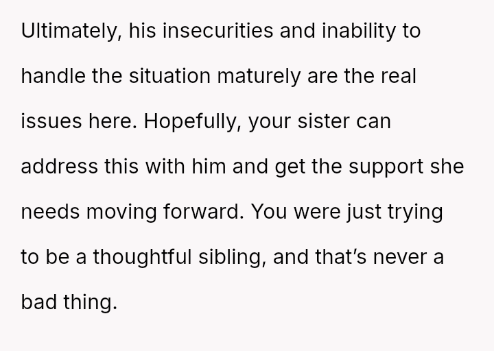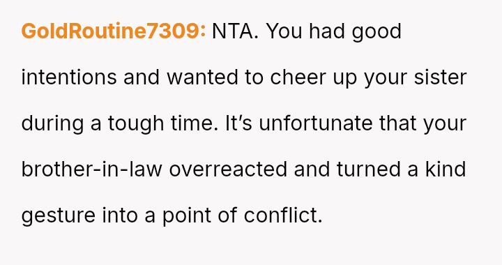 The original poster acted out of genuine care for his sister's emotional state, attempting to offer support through an anonymous gift.