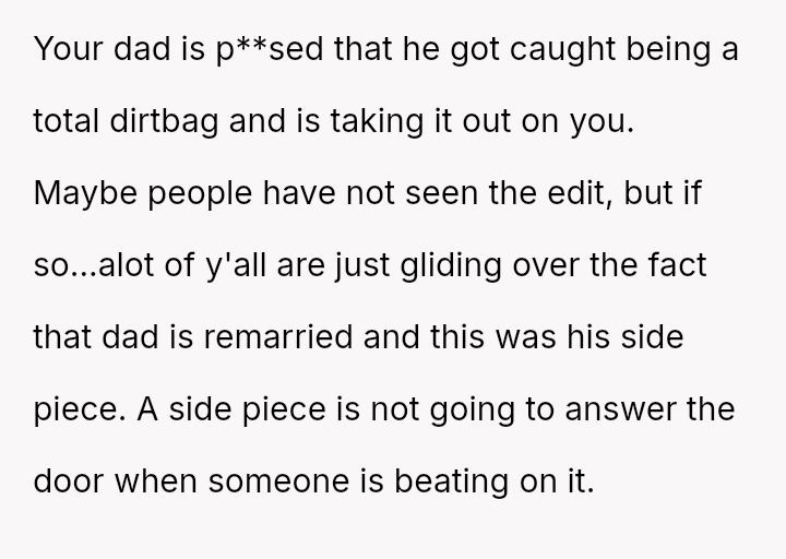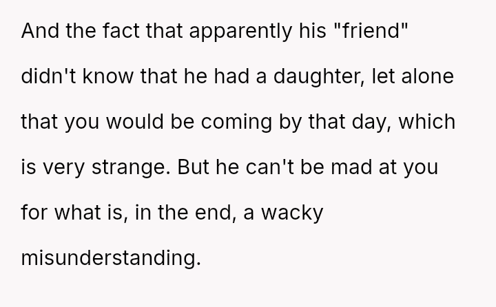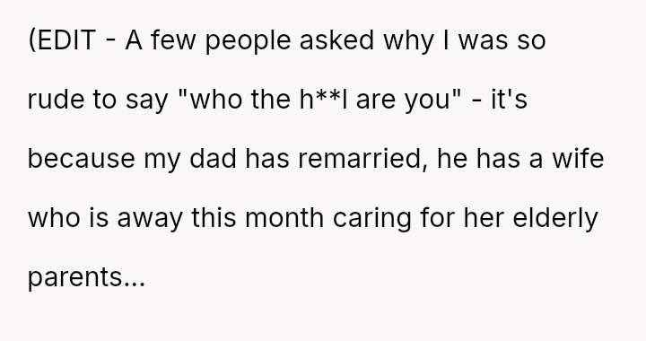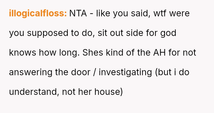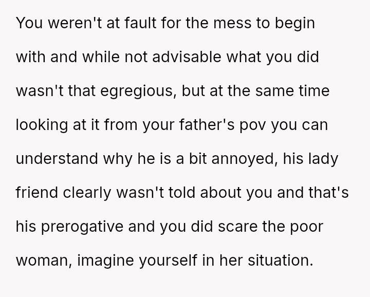 The central conflict arises because the father became upset, focusing on the perceived threat the OP posed to his female guest, rather than acknowledging the logistical failure that prompted the entry.