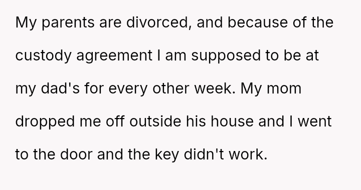 The weight of broken promises settled heavily on the child's shoulders as they stood locked out of the home that was supposed to be a sanctuary.