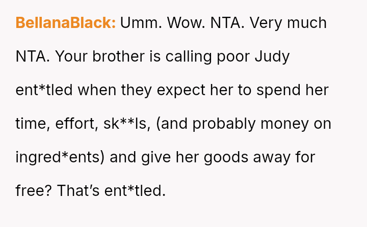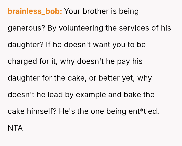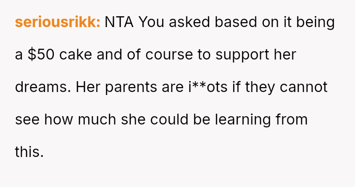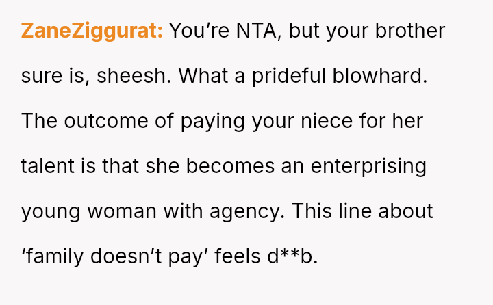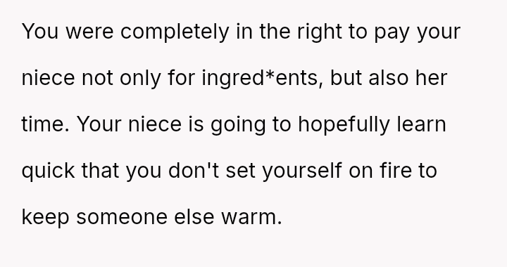 The original poster (OP) faced a conflict where they supported their niece's ambition to pay for culinary school by offering payment for a service, directly contradicting the wishes of the niece's parents who insisted on free labor based on family obligation.