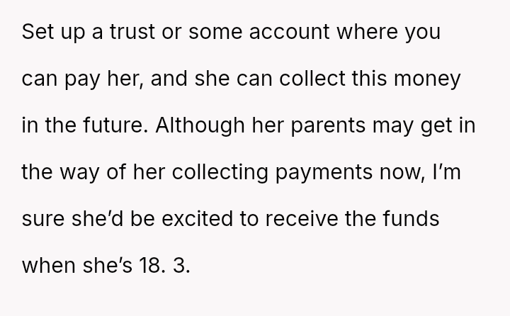 Does the preservation of a child's educational aspirations and fair compensation for work outweigh the parents' stated desire for free services based on familial relationship, especially when payment was offered privately to circumvent parental disapproval?