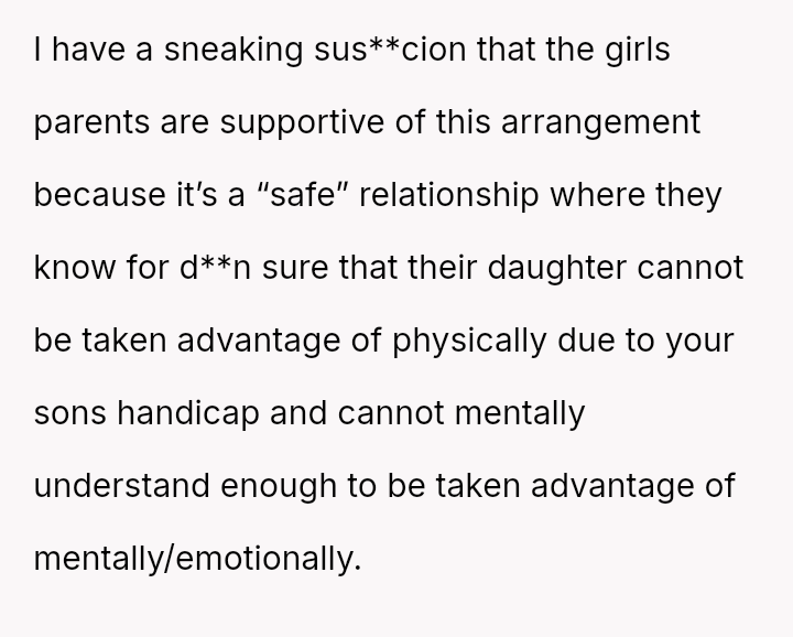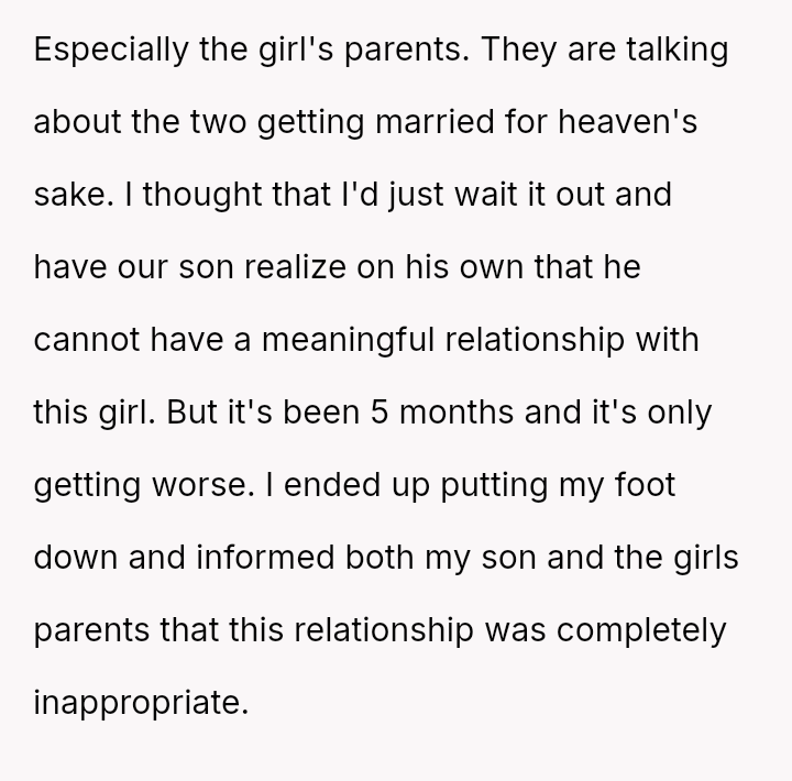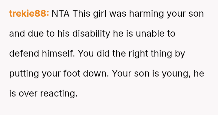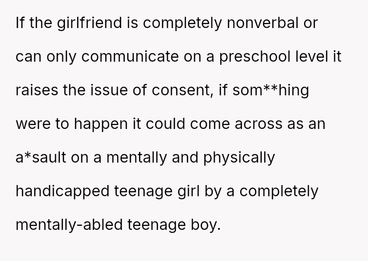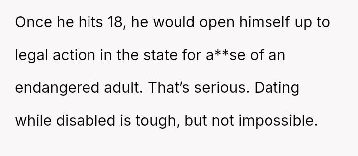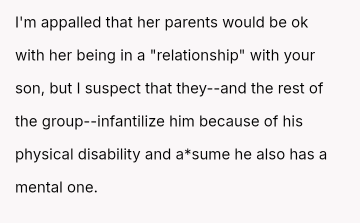 Considering the son's significant physical vulnerability and the documented physical harm occurring, were the parents justified in definitively ending the relationship to ensure their son's safety and well-being, or did their intervention wrongly override their capable son's autonomy and right to choose his own romantic partner?