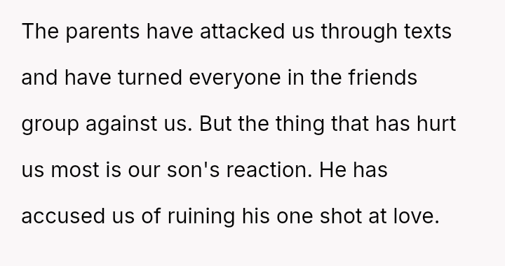 The original poster (OP) and their husband face intense isolation from their close friends group after intervening in their son's relationship.