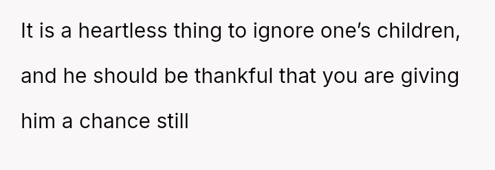 Is it fair to demand that a parent prioritize making amends with an older child over maintaining a s**ble, loving environment for their current nuclear family, or does the depth of the past neglect create an undeniable right for the child who was actively sought attention from the parent?