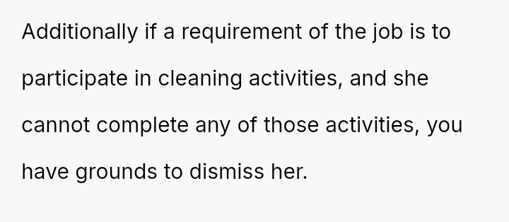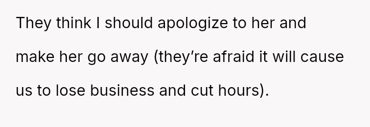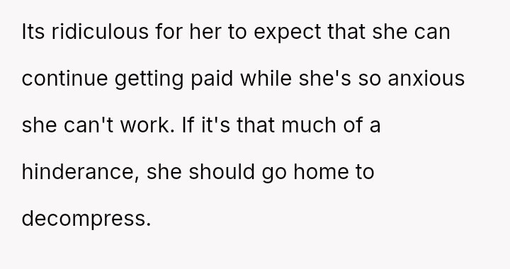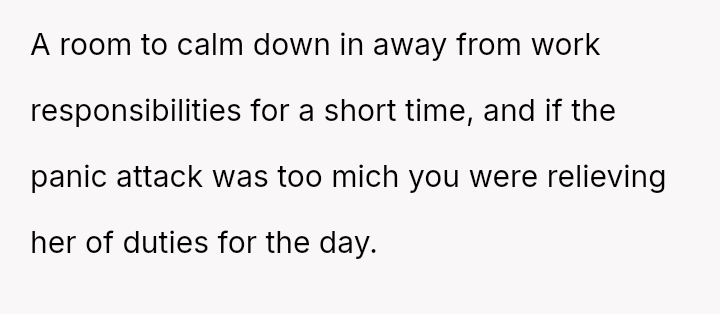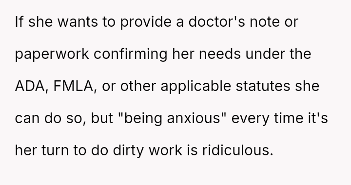 The business owner experienced a direct conflict when an employee refused to complete a rotating ch**e, claiming anxiety prevented her from taking out the t**sh.