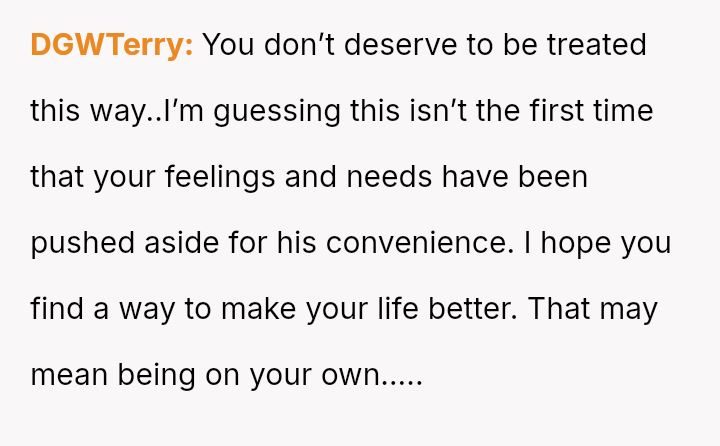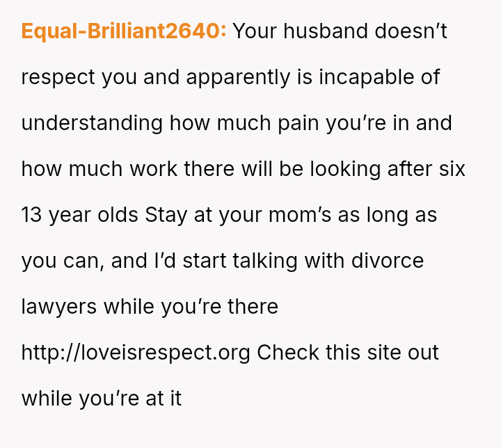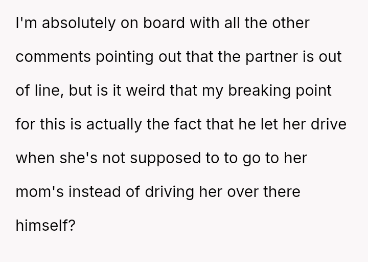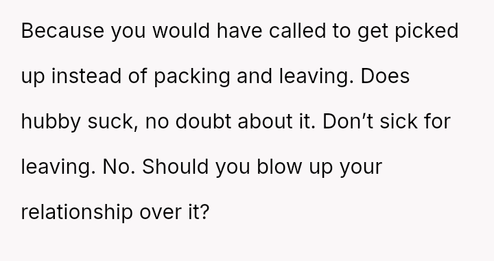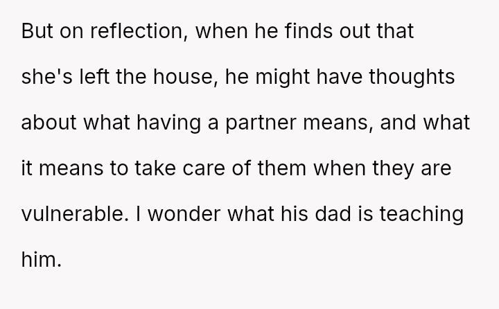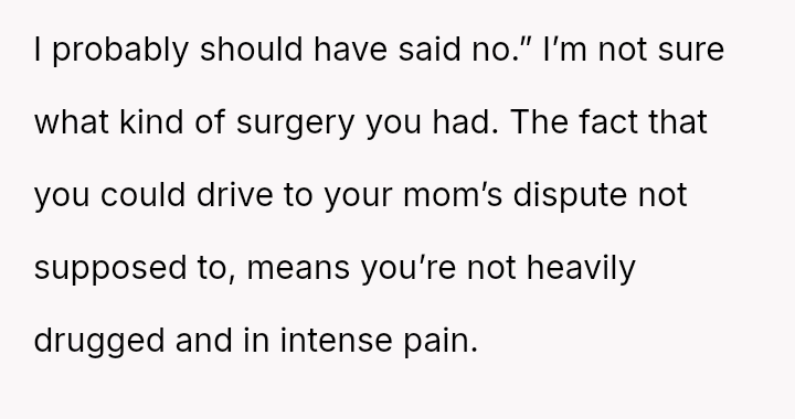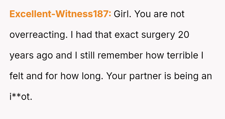 Given the acute physical recovery required after major surgery versus the partner's failure to prioritize his partner's well-being, was the OP justified in immediately leaving to stay with her mother, or would constructive communication have yielded a better outcome than abruptly deserting the situation?
