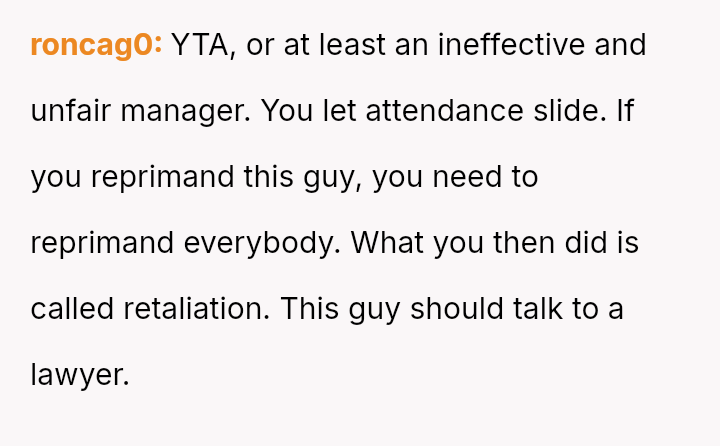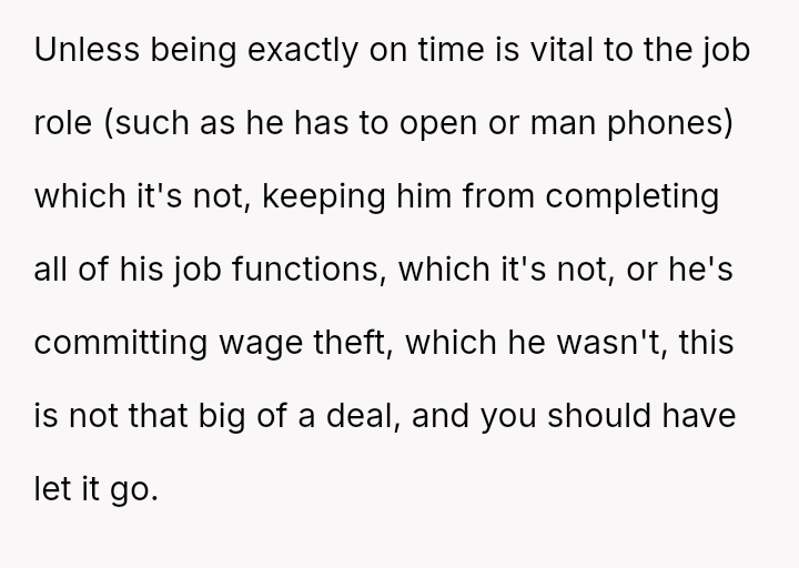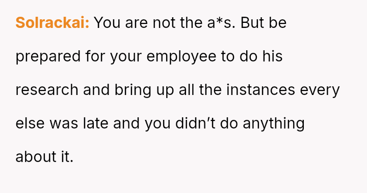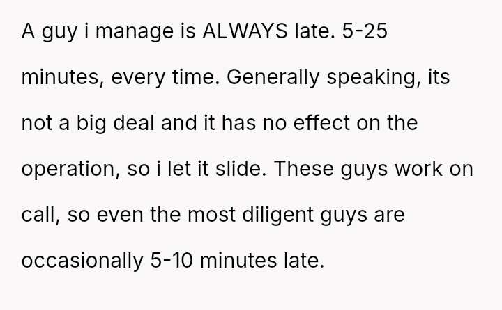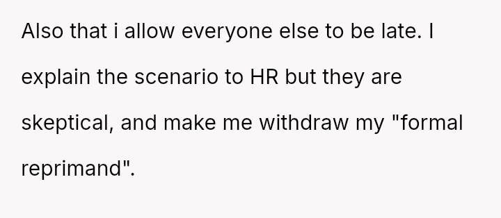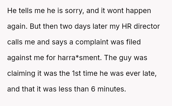 The original poster (OP) faced a recurring issue with an employee's chronic tardiness, leading to a formal disciplinary action that was initially reversed due to a complaint of h***ssment.