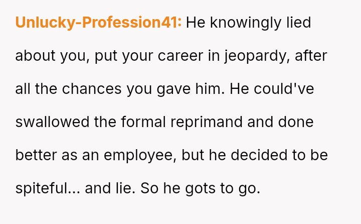 Given the documented pattern of behavior and the proven falsehoods presented to HR, was the OP justified in escalating the disciplinary action, potentially leading to termination for dishonesty, or did the initial reprimand and subsequent aggressive follow-up cross the line into unfair management practice?