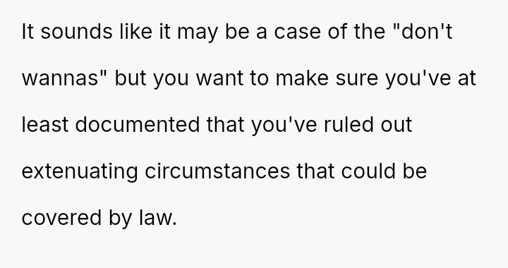 When the manager finally addresses the issue with clear expectations, the response is not remorse but deception and deflection.