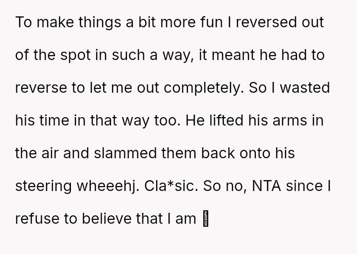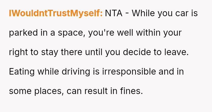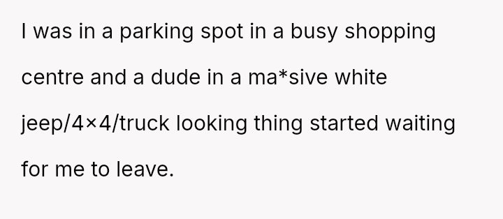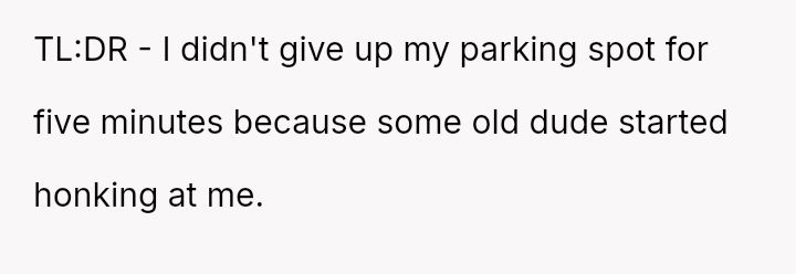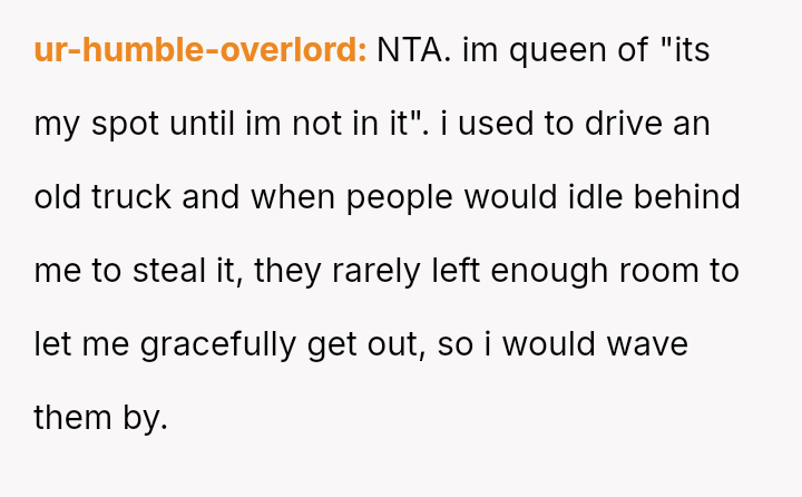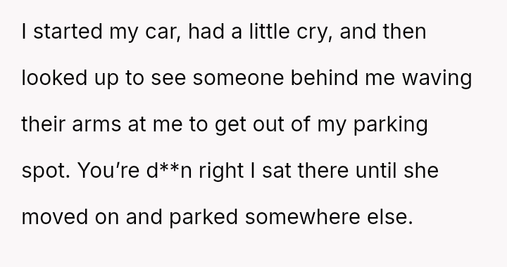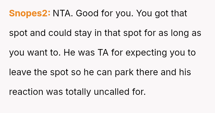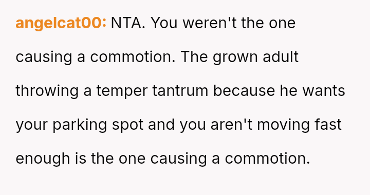 The original poster (OP) felt justified in defending their right to use a legally obtained parking spot, choosing to a*sert their boundary against aggressive demands from another driver.