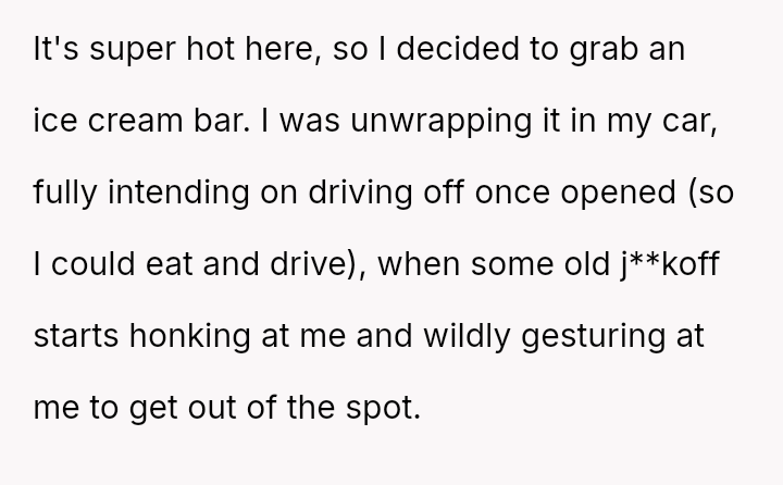 In the sweltering heat of a summer day, a simple trip to the grocery store turns unexpectedly tense when a young man, seeking a brief moment of relief with an ice cream bar, becomes the target of an older stranger's unwarranted anger.