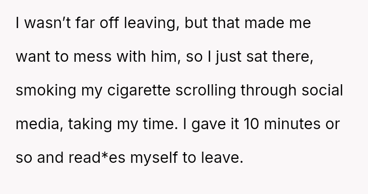 Was the OP correct in refusing to move immediately when confronted aggressively, prioritizing a brief personal act over de-escalation, or should they have yielded the spot instantly to avoid the public scene his reaction provoked? This remains the central question regarding balancing ent*tlement versus social peace.